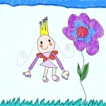 Aquesta imatge és el resultat de redibuixar amb el ratolí un dibuix de la meva filla, que aviat farà cinc anys. Es titula fada-peix, tal i com el seu cos de peix posa de manifest. La seva creativitat, i la del seu germà, de qui ha après també el joc del dibuix i l’expressivitat gràfica, així com la capacitat de joc de la seva germaneta petita, em deixen cada dia més admirat i agraït. Jo m’he limitat a fer l’exercici d’aprendre d’ells i deixar-lis paper i llapissos de colors. La seva imaginació em recorda que segurament tots hem estat creatius de petits, i que la major part hem descuidat aquesta aptitud.