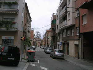 Carrer Oblit fotografiat davant de la porta del mercat, any 2007.