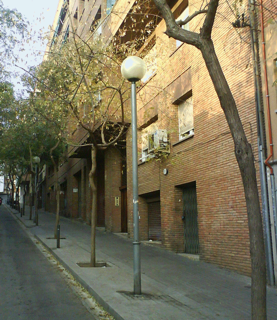 Podem tenir carrers arbrats amb amplades de 10 metres, com al passatge Llívia, amb espai per cotxes i voreres amples, amb calçades reduïdes i amb mesures reductores de velocitat com ara desnivells per zones preferentment per vianants, i podem també tenir unes bones voreres, i arbrades, al tram del passatge Agregació entre la plaça Guinardó i la ronda del Guinardó, amb 15 metres d’amplada!, i treure’n l’aparcament de vehicles en bateria. Això sí, sense faroles fora de mida, com la de la fotografia, que és més alta que la casa del costat.