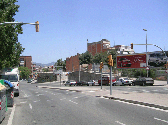 Com es pot observar la calçada és molt ample, ja que hi tenen cabuda més de dos cotxes, de fet hi cap una nova filera de cotxes i un pas central òptim per circular-hi. El motiu és que hi passen autobusos, però també hi ha un altre motiu, es va deixar com estava. Per exemple, la següent fotografia: