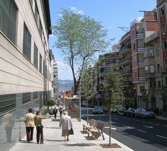 També cal establir diversos itineraris estructurants que donin vitalitat al barri, que promoguin el dinamisme social, que permetin convertir els simples desplaçaments en un passeig, i per això cal restringir la circul·lació, fer les calçades més estretes, les voreres més amples, fer un bon arbrat.