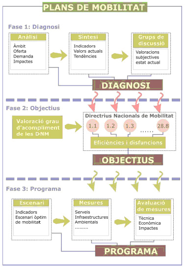 La Llei 9/2003, de 13 de juny, de la mobilitat, desplega un conjunt d’instruments de planificació de la mobilitat aplicables a diferents escales geogràfiques. En l’àmbit local correspon l’elaboració dels plans de mobilitat urbana.
