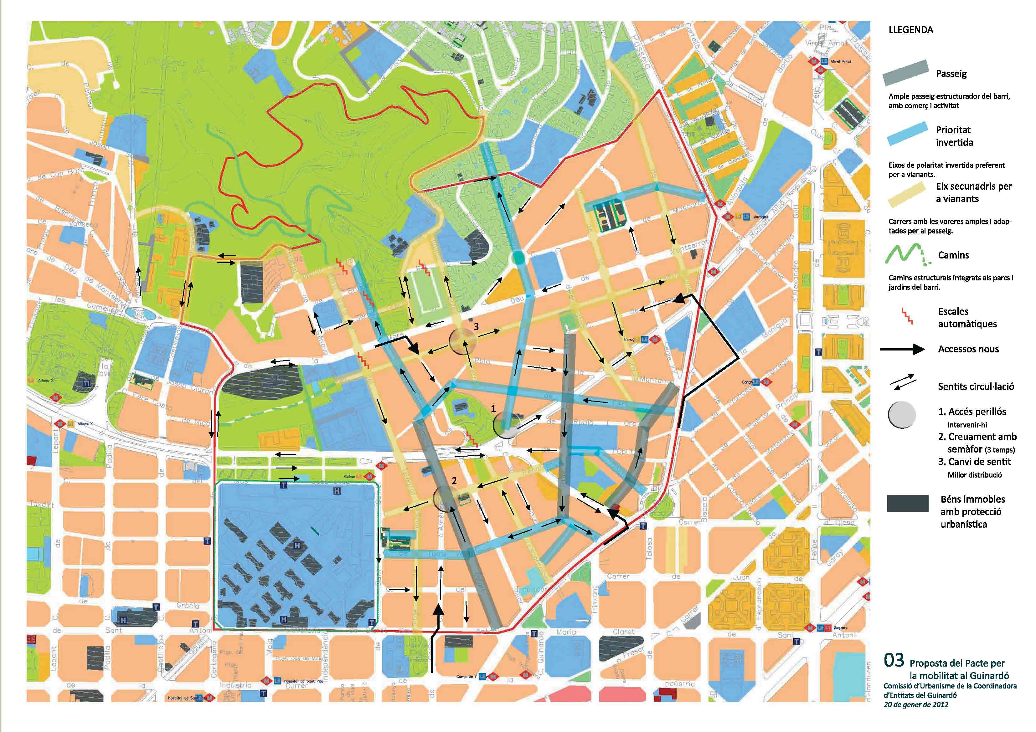 - Assolir un Pacte per la mobilitat consensuat amb la ciutadania, els tècnics municipals i els grups polítics, sobre un model de barri de futur, amb futur. Per això és necessari integrar la política econòmica, de mobilitat, social, ambiental, comercial, de serveis i patrimonial amb un projecte comú, un model de barri.