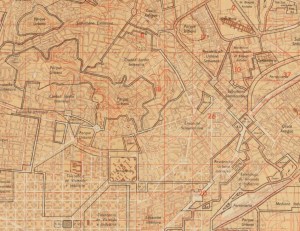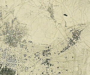 En el plànol adjunt es reconeix perfectament la traça de la Travessera de Gràcia a Sant Andreu de Palomar, de forma molt més nítida que al plànol de l’any 1861. S’observa també que no es veu la traça de l’Avinguda Gaudí, ni la localització de l’Hospital de Sant Pau. Feia temps però que el nou Hospital estava sobre la taula, de fet les obres s’iniciaren l’any 1902!.
