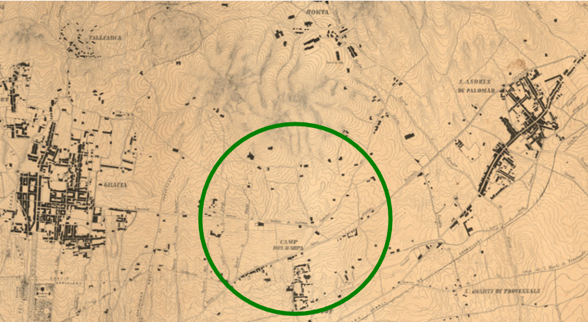 - Actual passeig Maragall fins a l’alçada d’Els Quinze, a l’actual avinguda Borbó, ja que el camí original anava fins a Santa Eulàlia com a via per anar a Horta.