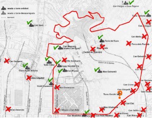 - Eliminació d’un tram del camí de pujada a la muntanya des del carrer Garrotxa. La divisió ha deixat el carrer del Centre deslocalitzat, quan abans anava directe a l’antic carrer d’Agregació (ara d’Anna M. Martínez Sagi).