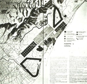 Més amunt hem parlat també del pla GATCPAC-Le Corbusier, conegut per Pla Macià de 1932, que preveia la transformació radical del nucli antic principalment en el sector del vell Raval i fins i tot de l’Eixample, amb la creació de noves illes de quatre-cents metres, obertes i airejades, i pensava revitalitzar tota l`àrea portuària que havia d’incloure tot el món administratiu de la ciutat; pensava descongestionar la ciutat d’establiments industrials; respectava el caràcter de les velles poblacions agregades; tendia a crear un eix de vies ràpides d’accés pel mateix interior de Barcelona i a completar la transformació de la muntanya de Montjuïc.