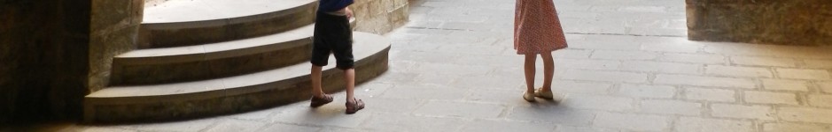 Infants contemplant un pati medieveal de Barcelona. Fotografia: Andreu Marfull i Pujadas, 2012