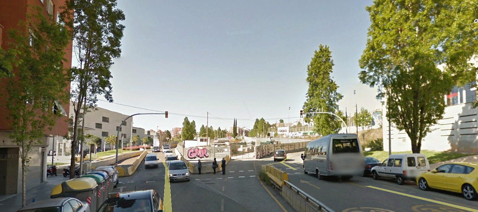 Ronda del Guinardó entre l’Hospital de Sant Pau i el Mas Guinardó, aparcaments i circul·lació, sis carrils en 20 metres d’amplada.