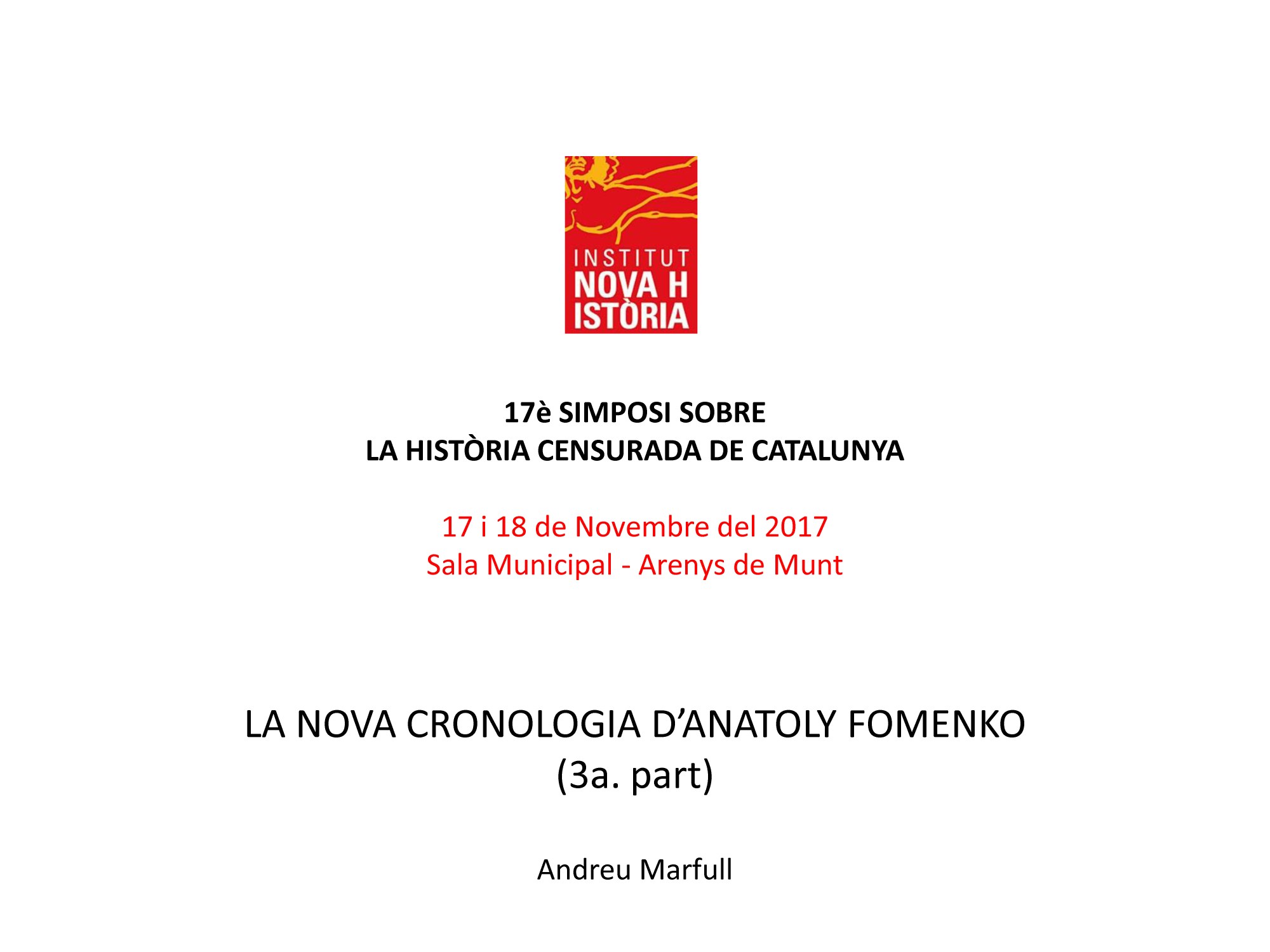 Ponència: “La Nova Cronologia d’Anatoly Fomenko (3a. part)”