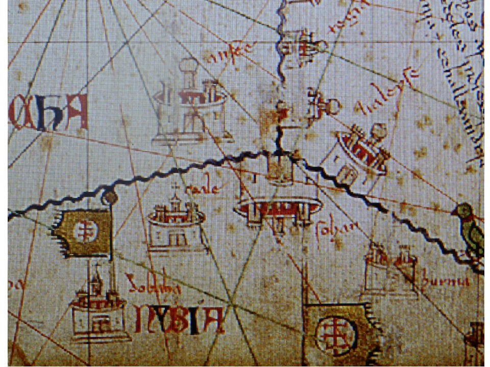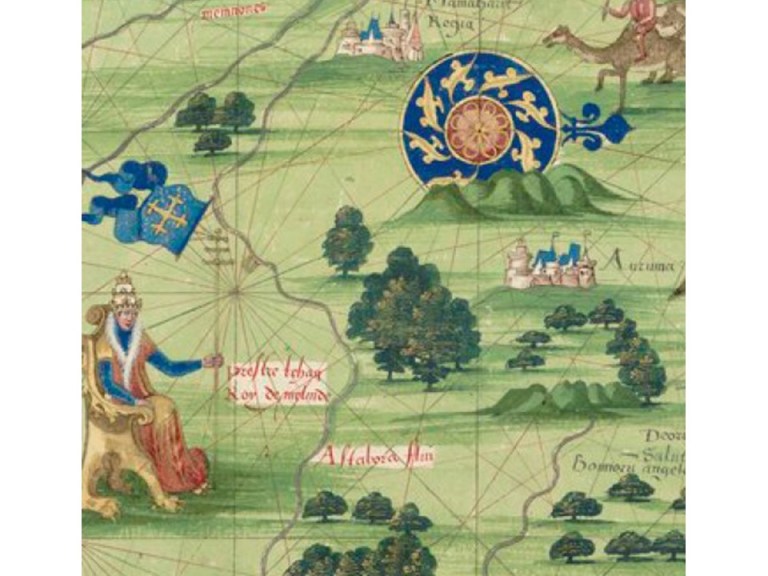 A continuación, se muestran imágenes que lo confirman, tomadas del libro Les cartes portolanes, antes citado. En las dos primeras se muestran los símbolos de la triple cruz papal, ubicados en el punto de unión de los dos Nilos, mientras que en las tercera y cuarta se muestra al Preste Juan con la triple corona papal. Son mapas hechos en territorios cristianos, y en ningún caso aparece nada parecido a un Papa de Roma.