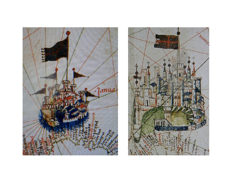 Génova, la sede del imperio del templo salomónico, honoraría a Juan. Por este motivo (para ocultar su significado) se le ha modificado el nombre, y se ha eliminado la “J” en el idioma italiano. Es la “ciudad de Juan”, y en los mapas medievales aparece como “Janua”. Las siguientes imágenes, de mapas medievales, extraídas del libro Les cartes portolanes antes citado, así lo confirman.