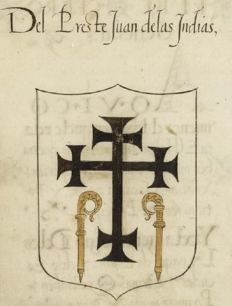 Imagen anterior: escudo y señal del Preste Juan, según un manuscrito cuya autoría se refiere a un cronista del rey Fernando de Aragón, del siglo XV.