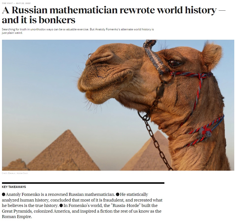 Here is the article: https://bigthink.com/the-past/anatoly-fomenko-history/