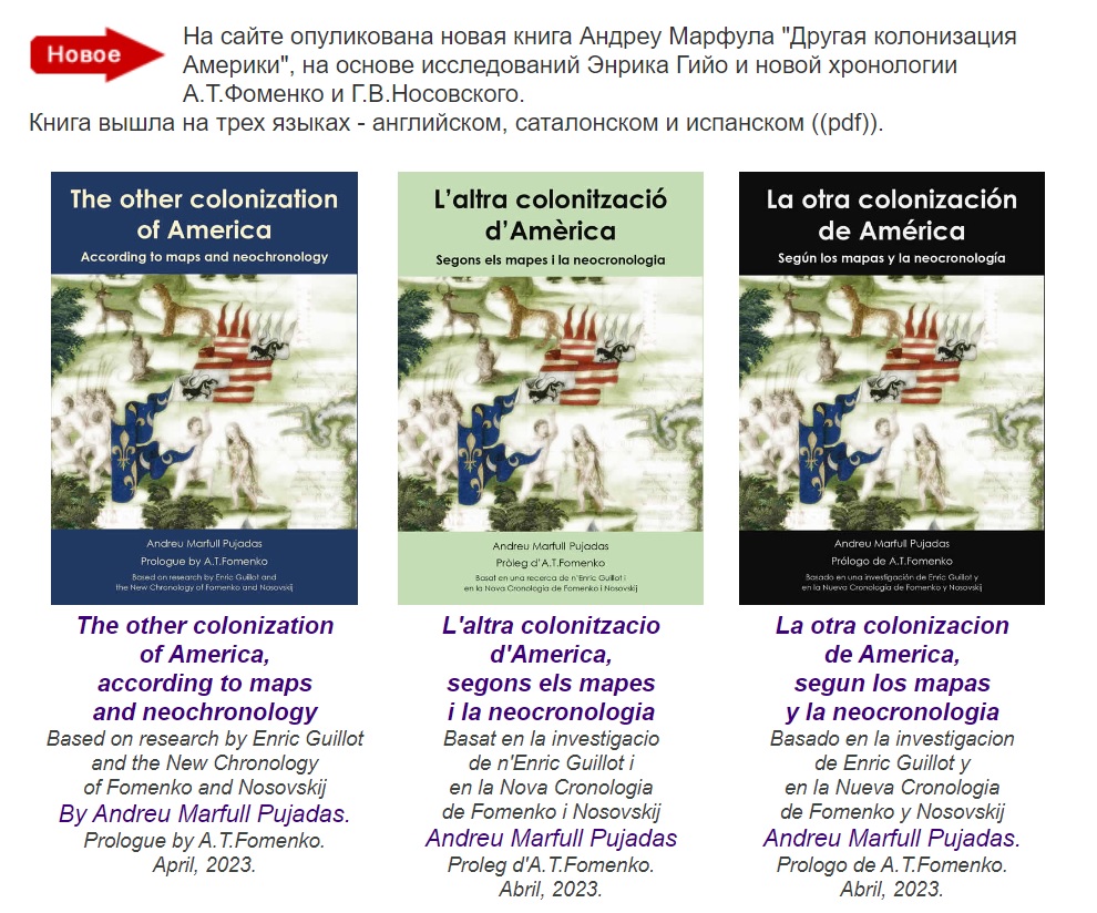 На сайте опуликована новая книга Андреу Марфула “Другая колонизация Америки”, на основе исследований Энрика Гийо и новой хронологии А.Т.Фоменко и Г.В.Носовского.