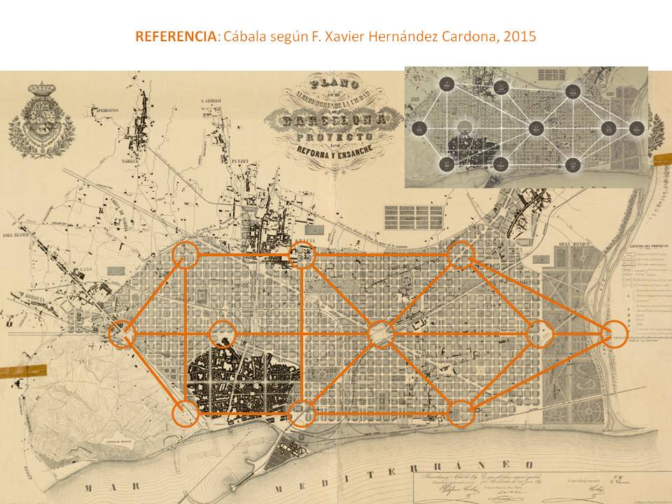 De esta forma, con esta geometría cabalística del plan Cerdà de Barcelona se descubre el misterio de Cristo y el verdadero significado, imperial, de él y de María Magdalena, formando parte (ella) de la casa condal catalana, francesa y europea. Se lee cómo se crea un espacio simbólico entre el Ayuntamiento de Barcelona y las trazas que ordenan el Eixample, haciendo de la plaza de las Glòries el centro geométrico donde se clava el “Conocimiento” (la Daat), y la cruz formada por los amantes Cristo y Magdalena, de linaje imperial griego y tártaro. Es una forma de escribir cómo el poder de Cristo, primero imperial y después espiritual, es el poder judío y cristiano, tártaro, genuino. Cerdà y Gaudí, entre otros, fueron coautores.