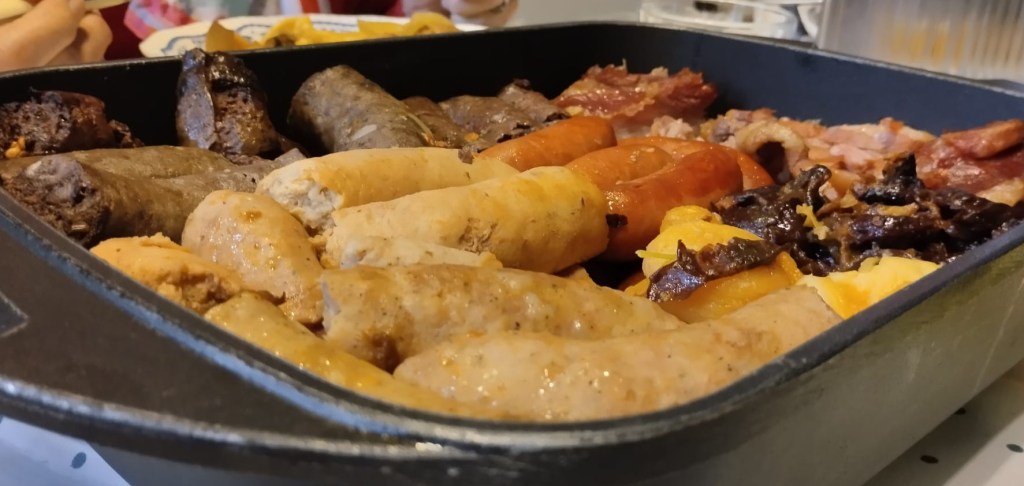 - 50% Botifarres: 1/3 de botifarra negra, 1/3 de botifarra blanca i 1/3 de botifarra d’ou