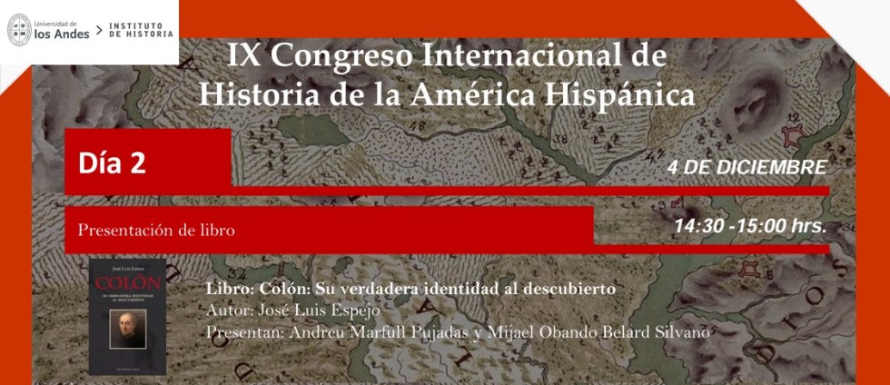 IX CIHAH, Universidad de los Andes (Chile): “Colón, su verdadera identidad al descubierto”, de José Luis Espejo