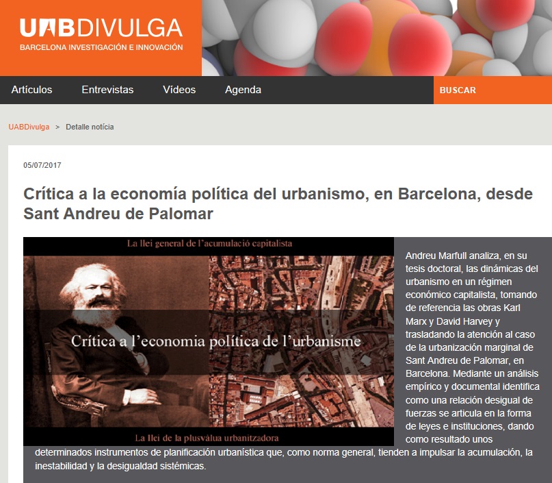 Crítica a la economía política del urbanismo, en Barcelona, desde Sant Andreu de Palomar